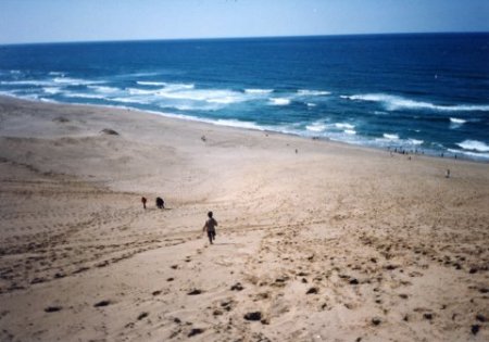 「イタリア行って本気で頑張ってきます」とは、 かつて全速力で海に向かって砂丘を駆け下りていった少年(写真中央)、卒業生K.S.の言葉。 それは同窓生の新年会で、遠方の大学で頑張っている後輩の成長振りに触発された彼が、 別れぎわに車を降りながら、さりげなく口にした密かな決意の言葉。 彼は現在イタリアでの料理人の修行を終え、イタリア料理店のシェフに。ほんとに立派な男になったと思う。 ふだん無口で、絶対に大口をたたいたりしない奴なだけに、よけいカッコよかった。